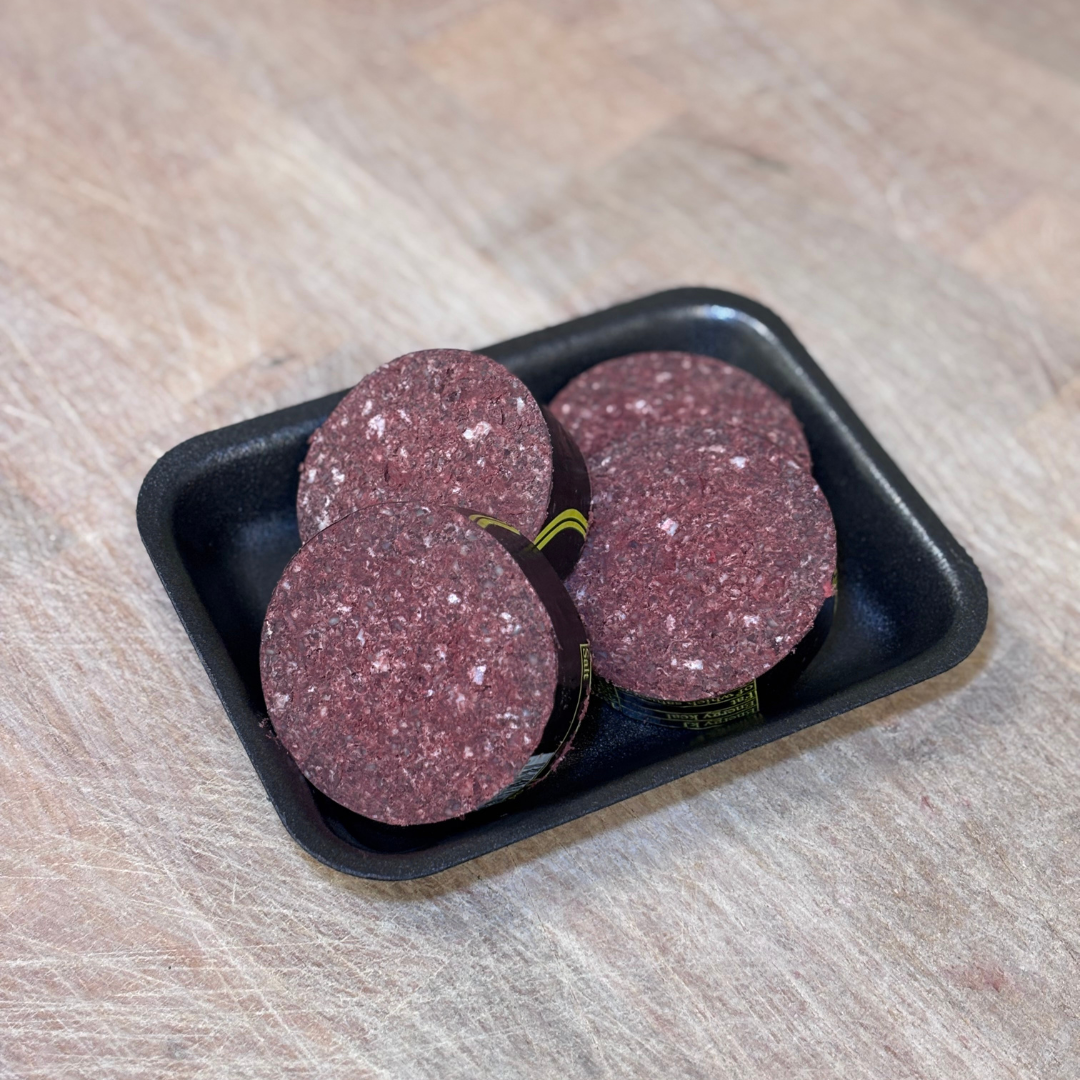 Ingredients: Beef Suet, vegetable fat, oatmeal (gluten), pork blood, onions, salt, spices.